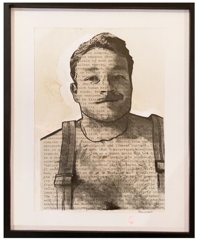 In December 2021, I departed from this style creating my first semi-traditional portrait LEWIS/SONTAG: Dec 21 (in blood, urine, semen, sharpie, charcoal, pencil, PrEP). It’s a portrait of queer theorist Lewis Wood that incorporates a passage from Susan Sontag’s essay ‘The Pornographic Imagination’. All the usual material aspects from my past works are there, but I wanted to represent that fact that advances in healthcare mean that semen is no longer seen as taboo (in the danger sense at least). To reflect this, the portrait is sealed in glitter (inspired by CA Conrad’s Glitter in My Wounds) made from crushed up PrEP (a pre-exposure prophylaxis that protects you from HIV infection when taken properly).
